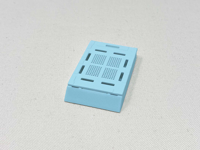 - Los casetes de poro fino pueden utilizarse para biopsias de 1 mm o menos. El uso de este casete significa que puede no ser necesaria una bolsa o envoltorio de biopsia para garantizar que la muestra no se suelte durante el procesamiento.